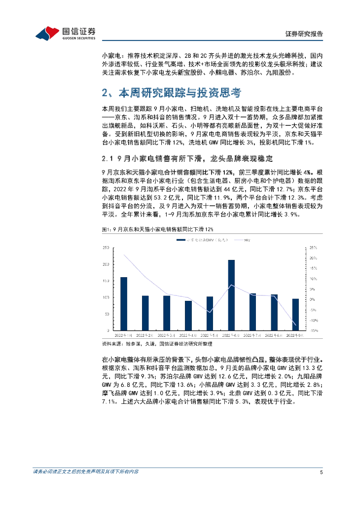 国信证券:家电行业周报(22年第41周):9月新品频出蓄势双十一,家电电商销售表现平淡.pdf