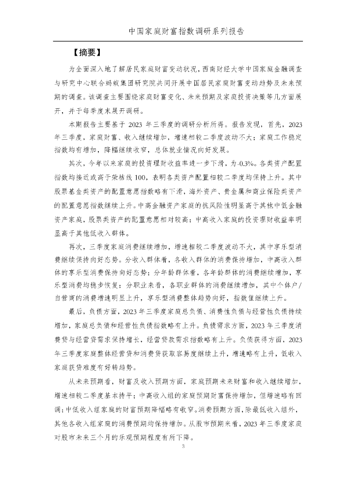 西南财经大学:2023Q3中国家庭财富变动趋势-中国家庭财富指数调研系列报告.pdf