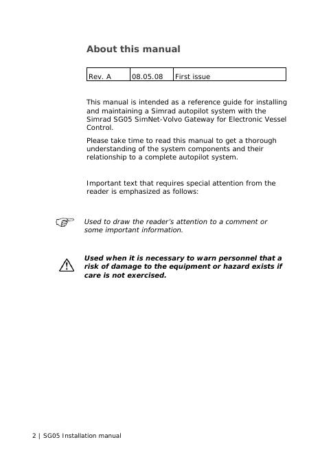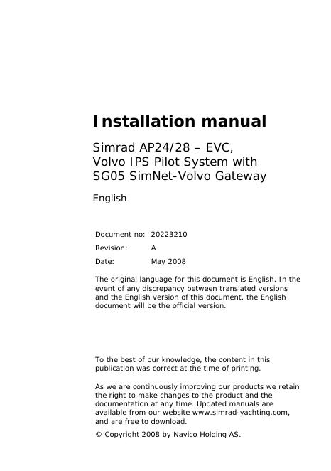 Simrad AP24/28 - EVC,Volvo IPS Pilot System with SG05 SimNet-Volvo Gateway 安装手册.pdf