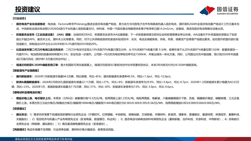 国信证券:锂电产业链双周报(2026年3月第1期):比亚迪发布第二代刀片电池,欧盟发布工业加速法案提案.pdf
