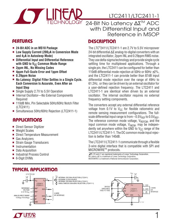 LINEAR TECHNOLOGY - LTC2411/LTC2411-1数据手册.pdf