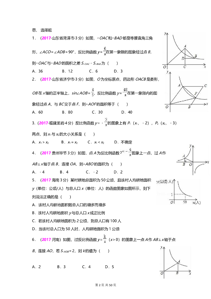 数学全国中考真题分类汇编专题13 反比例函数.doc