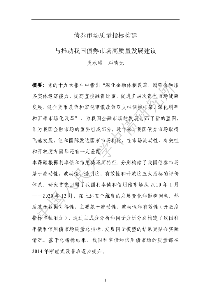 中国人民大学中债研究所:债券市场质量指标构建与推动我国债券市场高质量发展建议.pdf