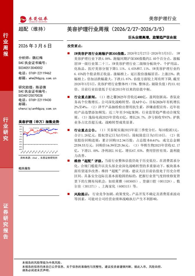 东莞证券:美容护理行业周报:巨头业绩高增,监管趋严促合规.pdf