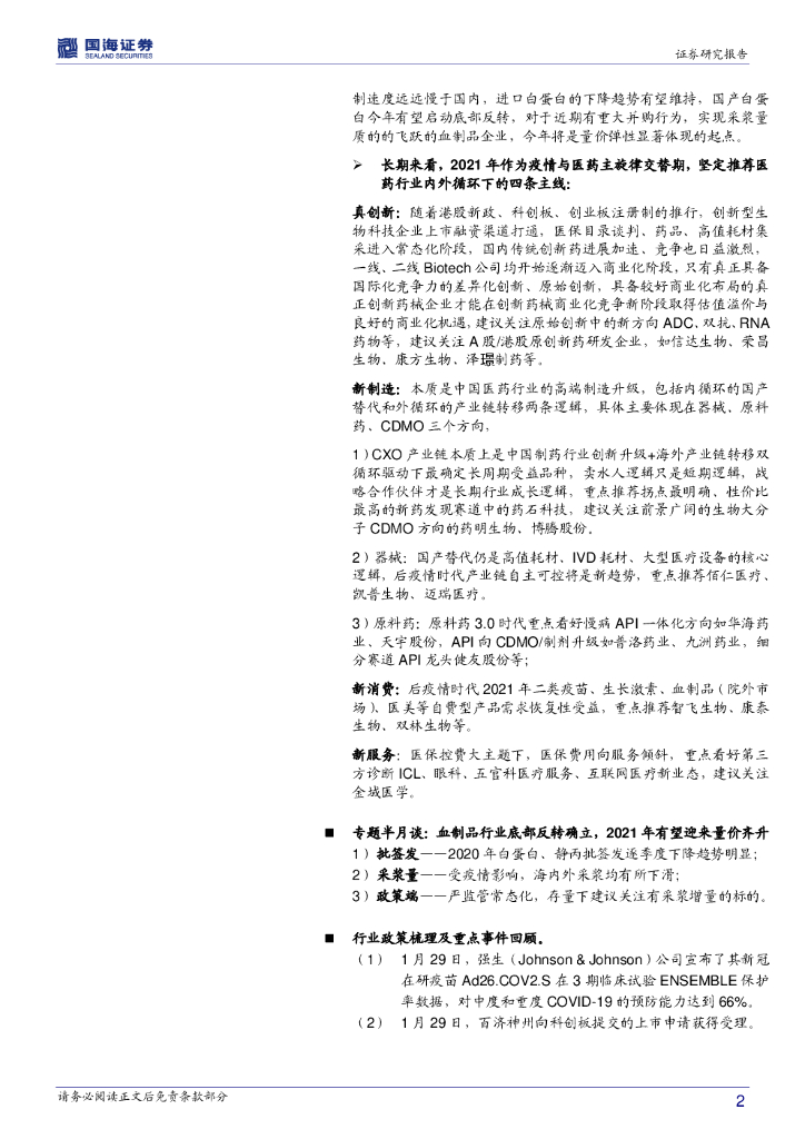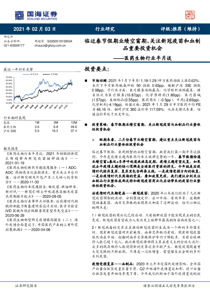 国海证券:医药生物行业半月谈:临近春节假期业绩空窗期,关注新冠疫苗和血制品重要投资机会.pdf
