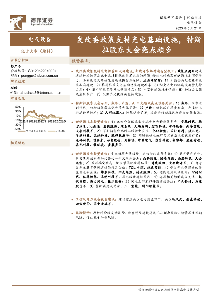 德邦证券:电气设备行业周报:发改委政策支持充电基础设施,特斯拉股东大会亮点颇多.pdf