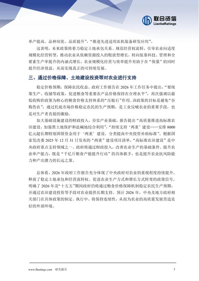 联合资信评估:2026年政府工作报告农业领域相关内容解读:筑牢安全根基,引领农业可持续发展-260317.pdf