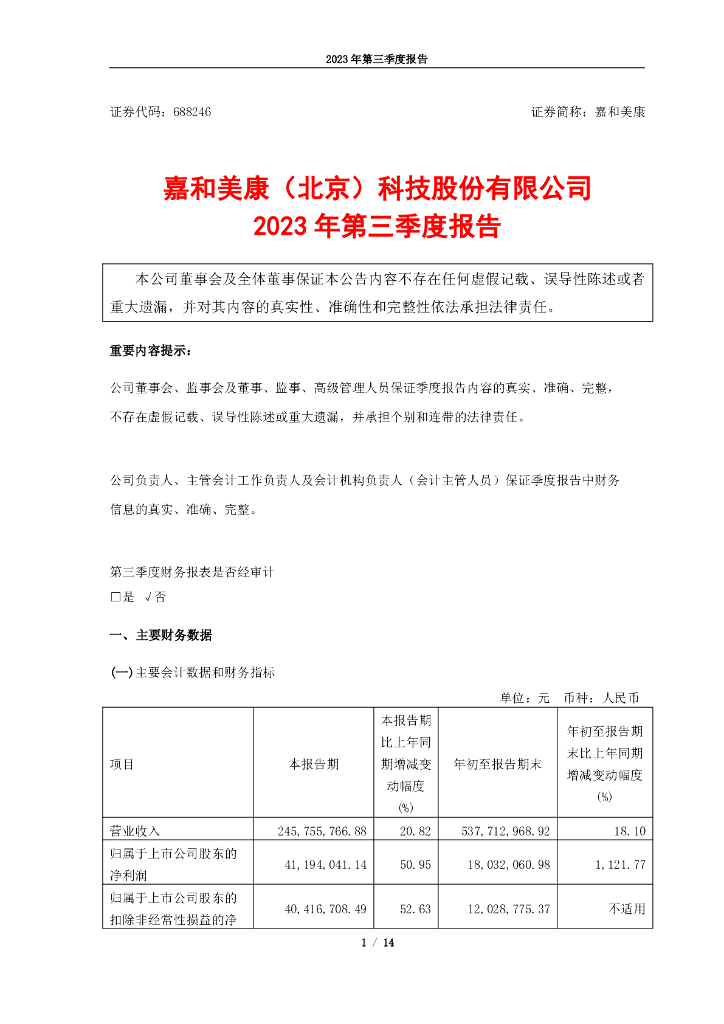 688246-嘉和美康:嘉和美康2023年第三季度报告(更正版).pdf
