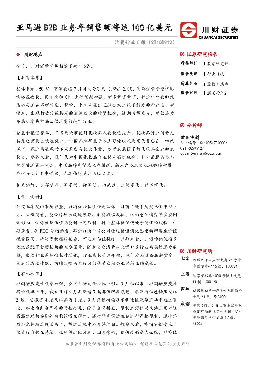 川财证券:消费行业日报:亚马逊B2B业务年销售额将达100亿美元.pdf