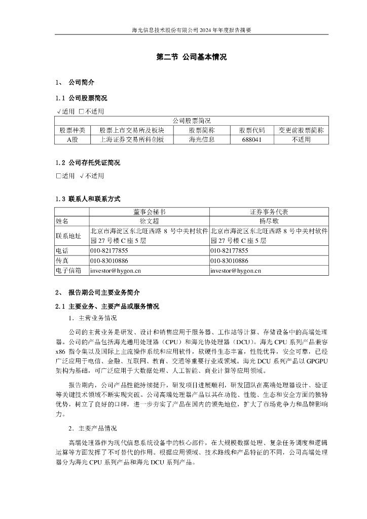 688041-海光信息:海光信息技术股份有限公司2024年年度报告摘要.pdf