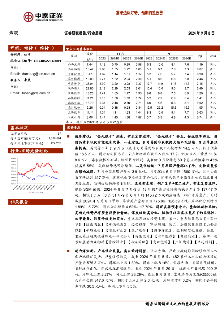 中泰证券:煤炭行业周报:需求边际好转,预期有望改善.pdf