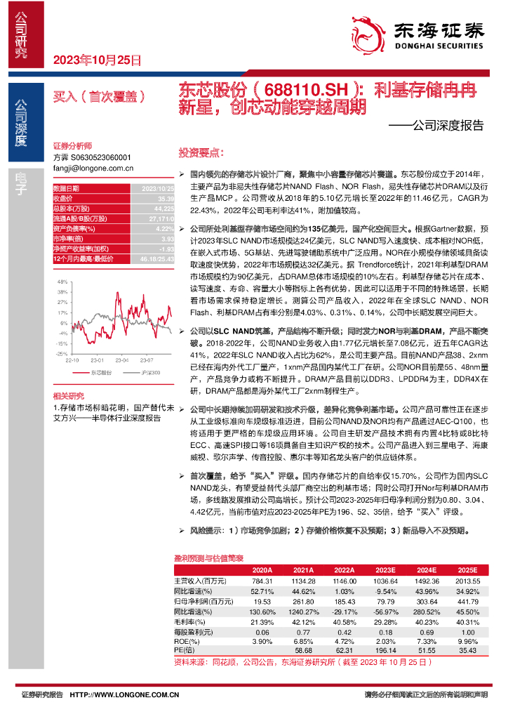 东海证券:东芯股份(688110)-公司深度报告:利基存储冉冉新星,创芯动能穿越周期.pdf