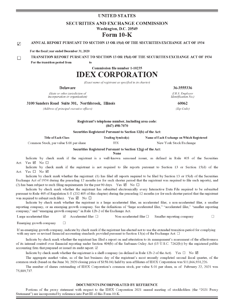 IDEX Corporation(IEX)2020财年年度报告(英文版).pdf