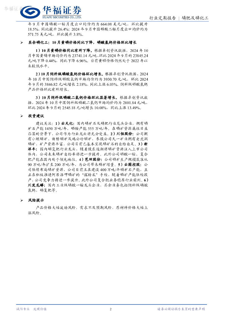 华福证券:磷肥及磷化工行业定期跟踪:磷酸二铵价格保持稳定,磷酸二氢钙价格环比显著上涨.pdf
