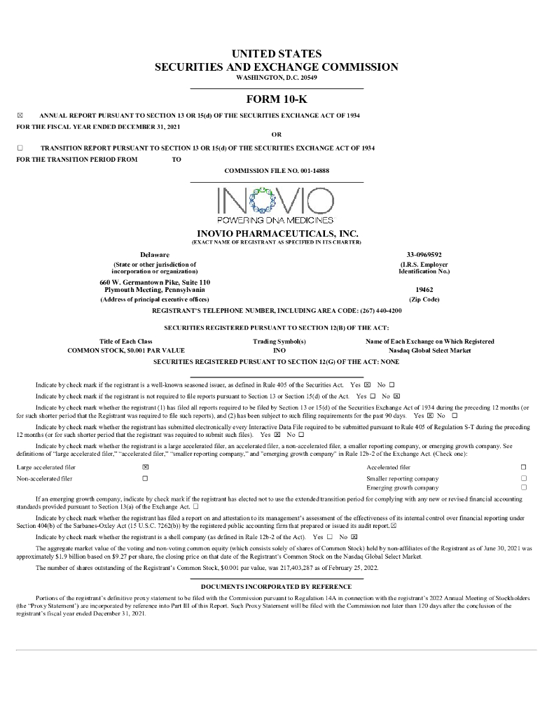 Inovio Pharmaceuticals, Inc.(INO)2021财年年度报告(英文版).pdf
