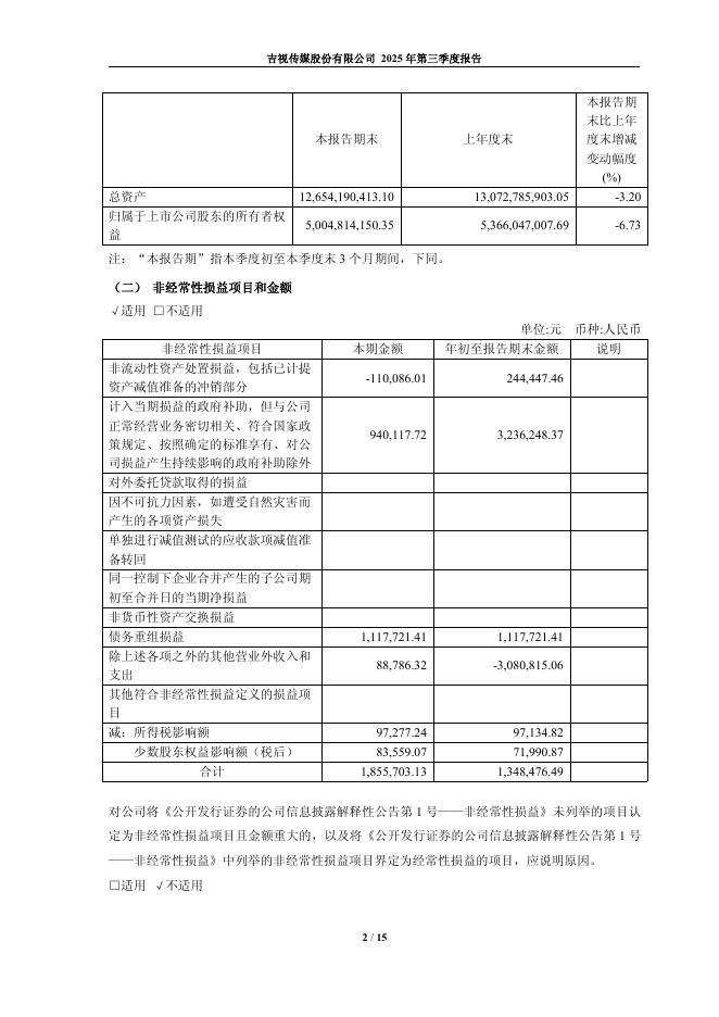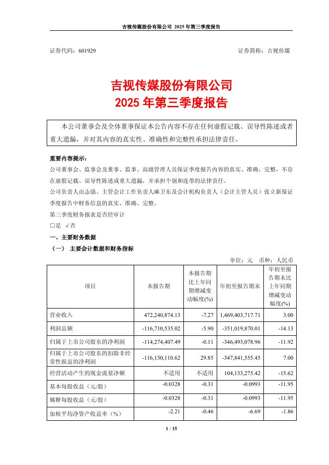601929-吉视传媒:吉视传媒股份有限公司2025年第三季度报告.pdf