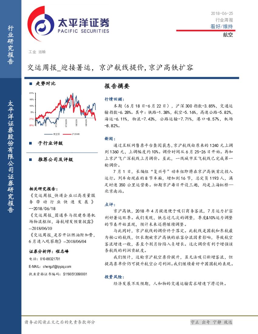 太平洋证券:交运周报:迎接暑运,京沪航线提价,京沪高铁扩容.pdf