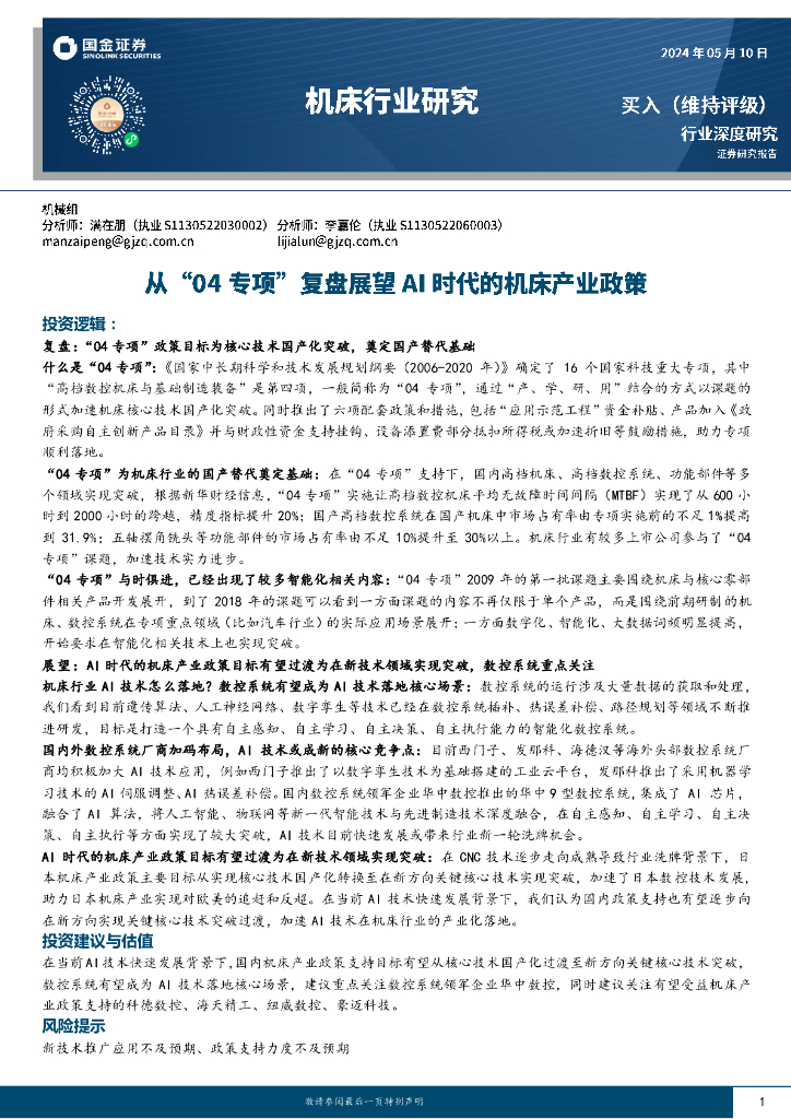 国金证券:机床行业研究:从“04专项”复盘展望AI时代的机床产业政策.pdf
