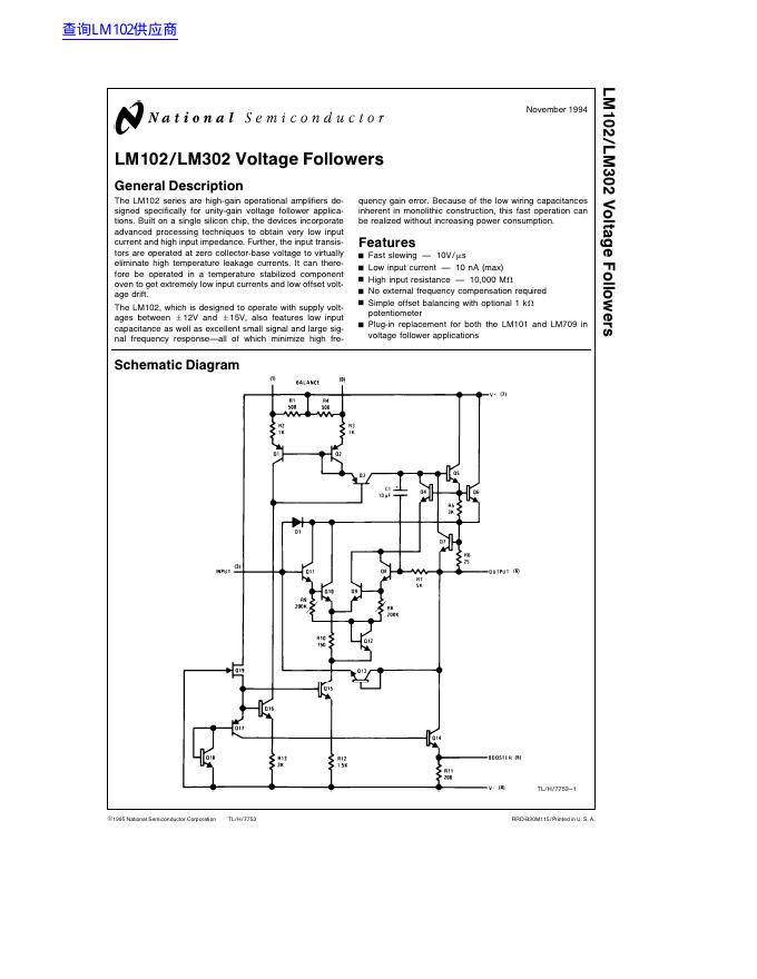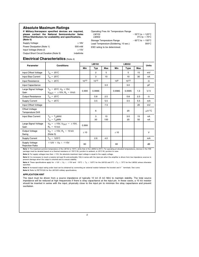 National Semiconductor LM102/LM302 Voltage Followers 数据手册.pdf