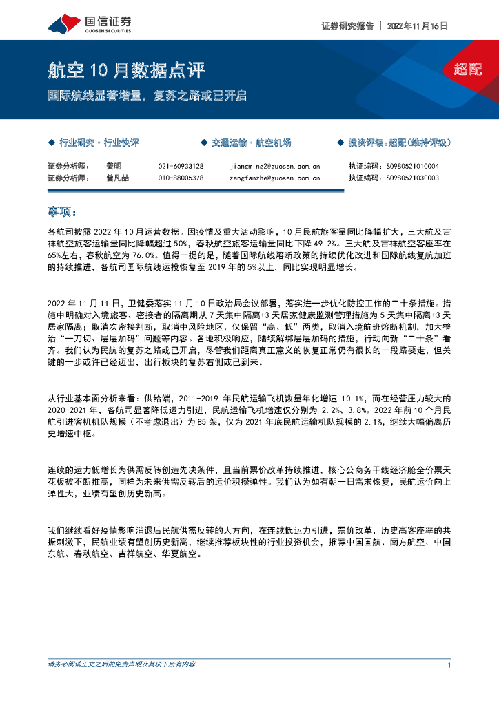 国信证券:航空10月数据点评:国际航线显著增量,复苏之路或已开启.pdf