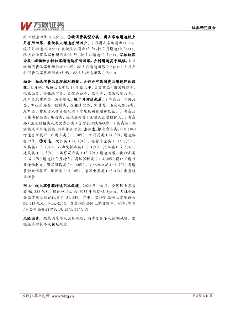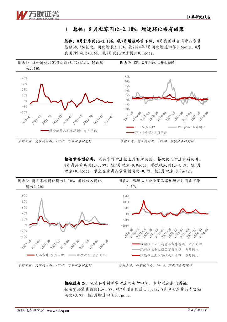 万联证券:2024年8月社零数据跟踪报告:8月社零同比+2.10%,较7月略有下降.pdf