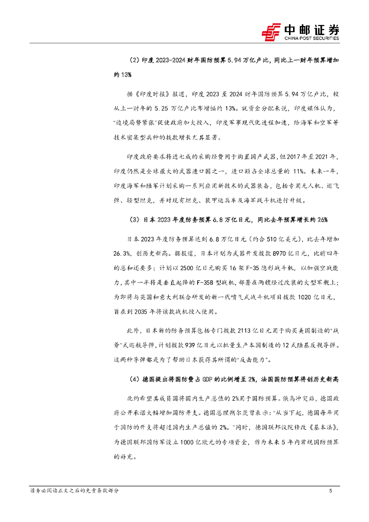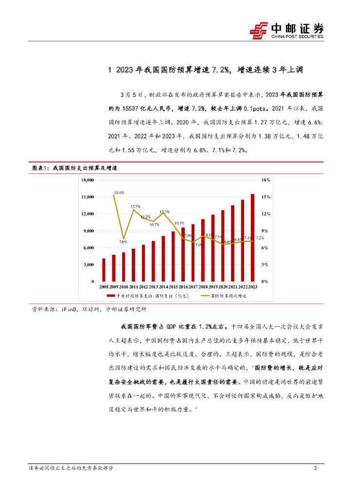 中邮证券:国防军工:国防预算再提速,关注高景气和新趋势两条主线.pdf