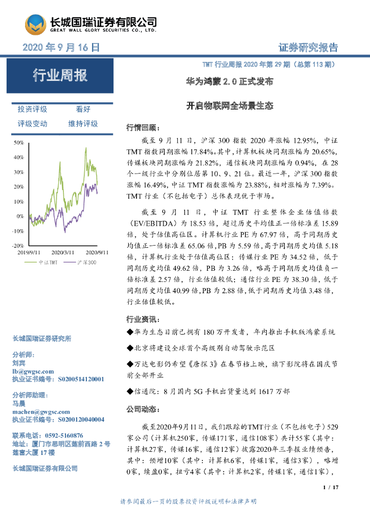 长城国瑞证券:TMT行业周报2020年第29期(总第113期):华为鸿蒙2.0正式发布 开启物联网全场景生态.pdf