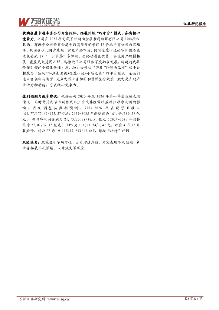 万联证券:芒果超媒(300413)-点评报告:业绩稳中有进,四平台协同打造芒果生态圈.pdf