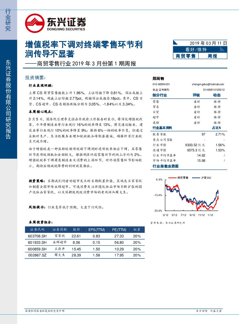东兴证券:商贸零售行业2019年3月份第1期周报:增值税率下调对终端零售环节利润传导不显著.pdf