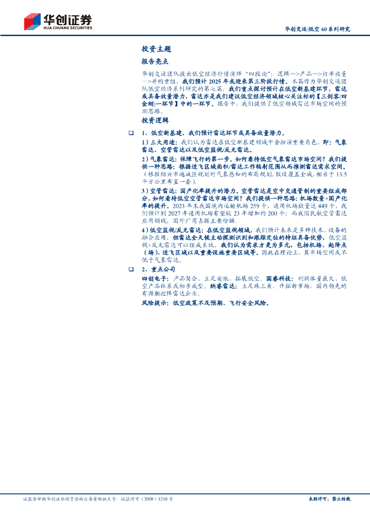 华创证券:华创交运低空60系列研究(七):低空新基建,哪个环节或放量?雷达行业初探.pdf