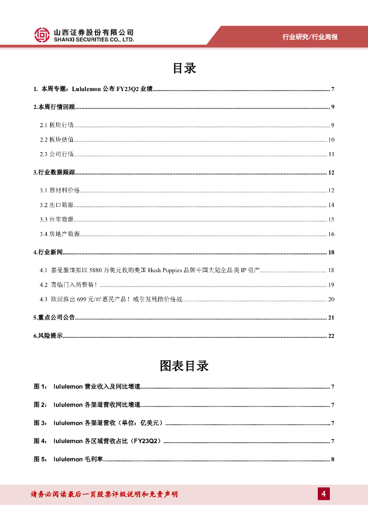 山西证券:纺织服装行业周报:Lululemon上调FY2023收入指引,丰泰8月营收降幅继续收窄.pdf