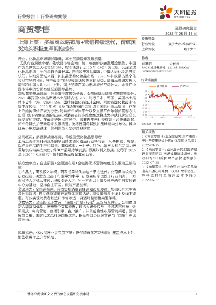 天风证券:商贸零售:上海上美:多品牌战略布局+营销持续迭代,传统国货龙头积极变革拥抱成长.pdf