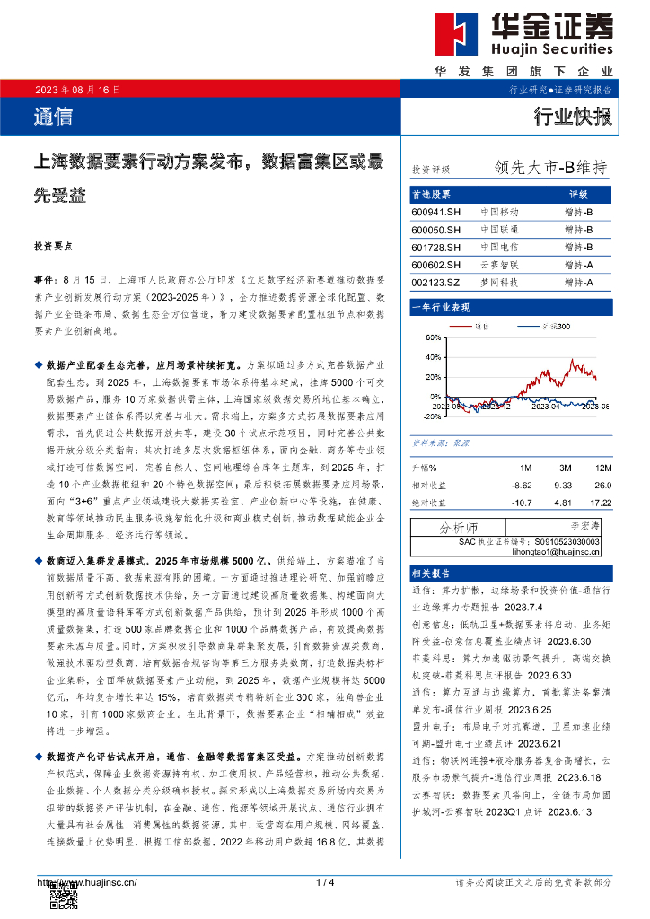 华金证券:通信行业快报:上海数据要素行动方案发布,数据富集区或最先受益.pdf