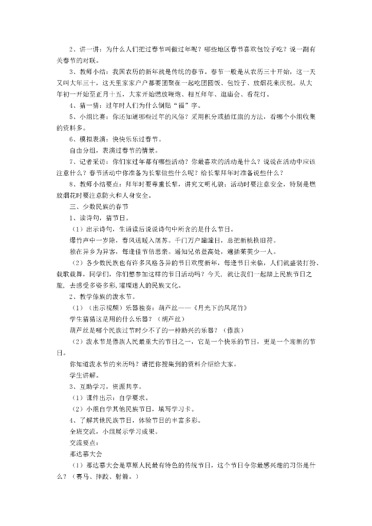 2021一年级上册 人教版小学道德与法治《15 快乐过新年》教学设计(1).doc