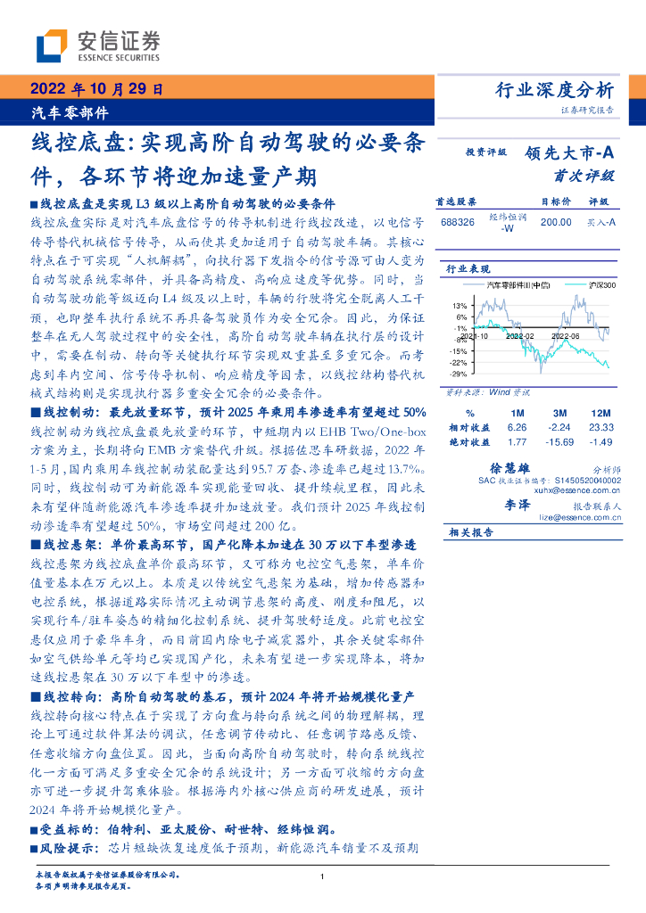 安信证券:汽车零部件:线控底盘:实现高阶自动驾驶的必要条件,各环节将迎加速量产期.pdf