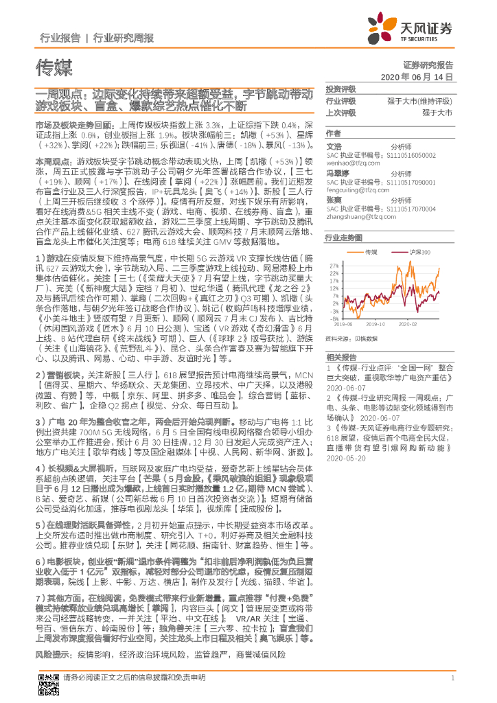 天风证券:传媒一周观点:边际变化持续带来超额受益,字节跳动带动游戏板块、盲盒、爆款综艺热点催化不断.pdf