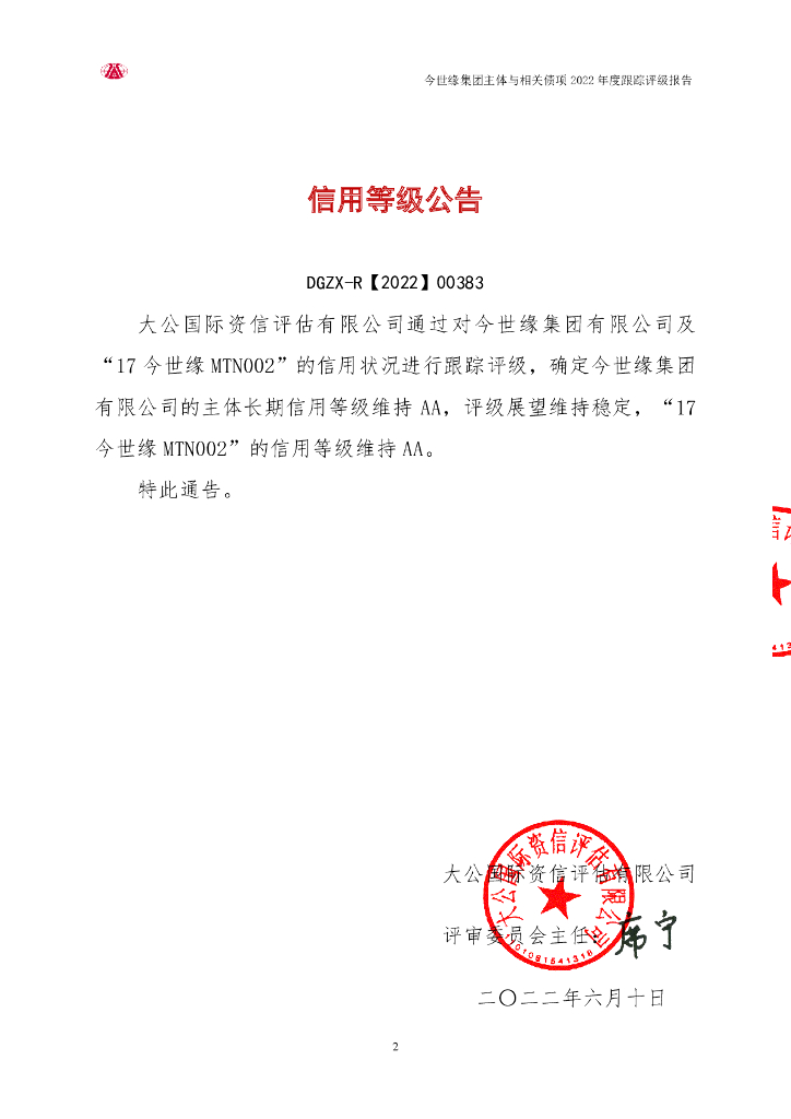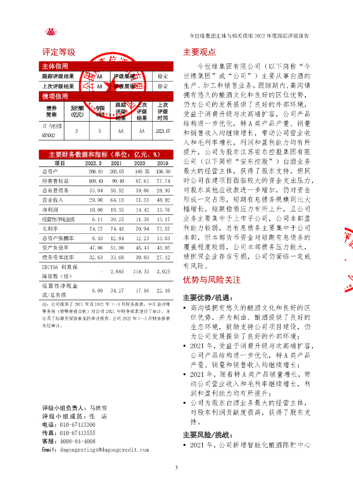 大公:今世缘集团有限公司主体与相关债项2022年度跟踪评级报告.pdf