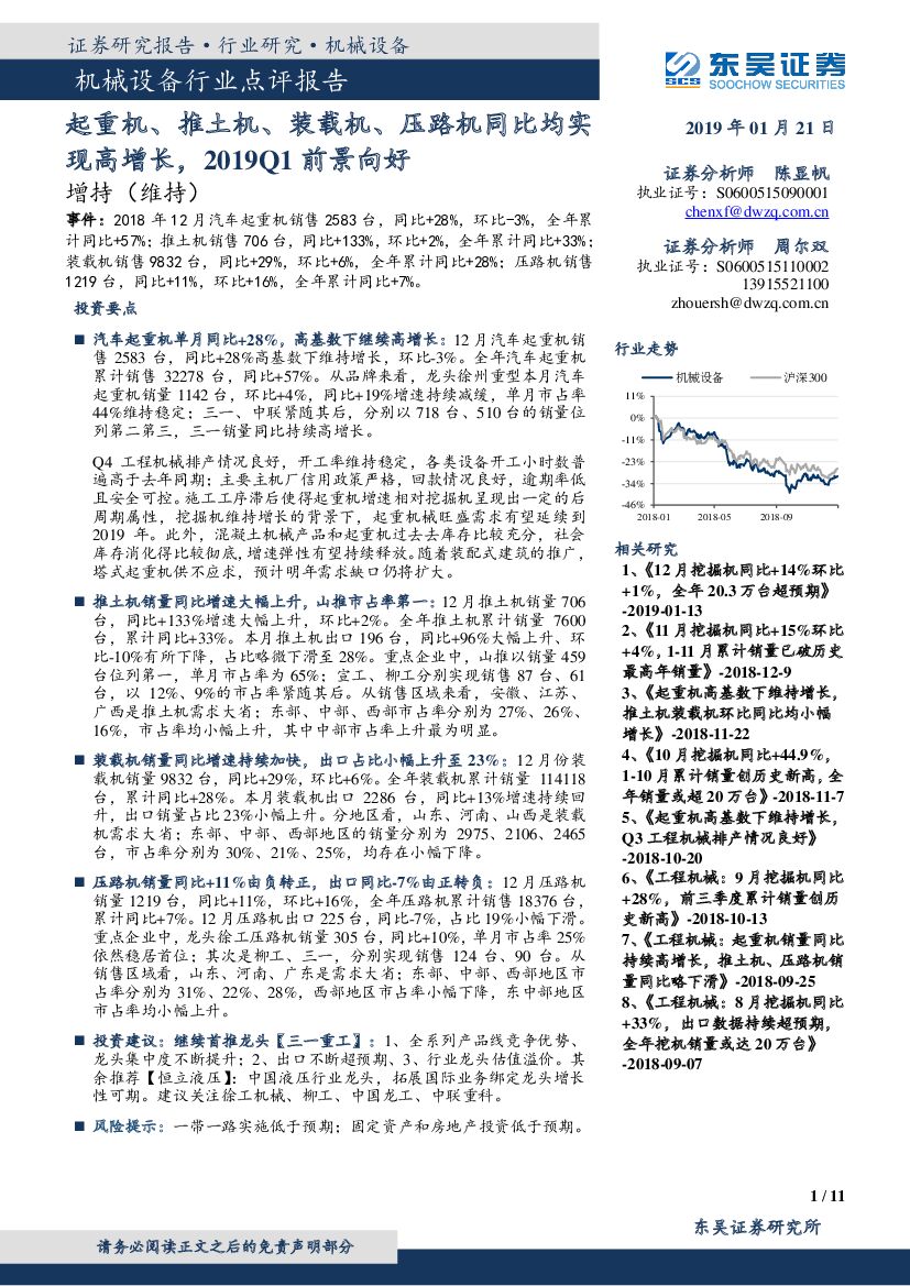 东吴证券:机械设备行业点评报告:起重机、推土机、装载机、压路机同比均实现高增长,2019Q1前景向好.pdf