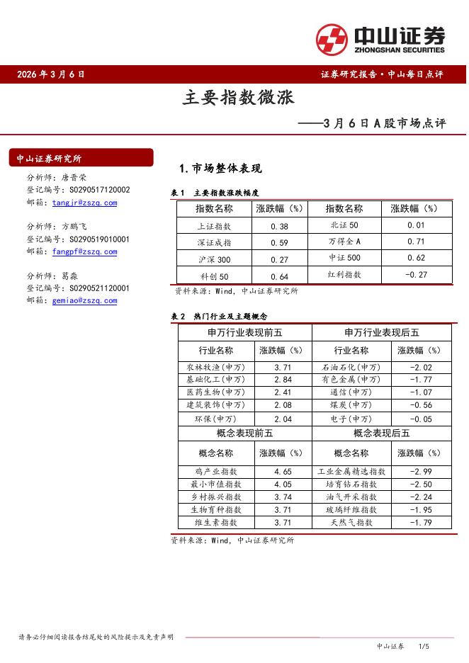 中山证券:A股市场点评:主要指数微涨-260309.pdf