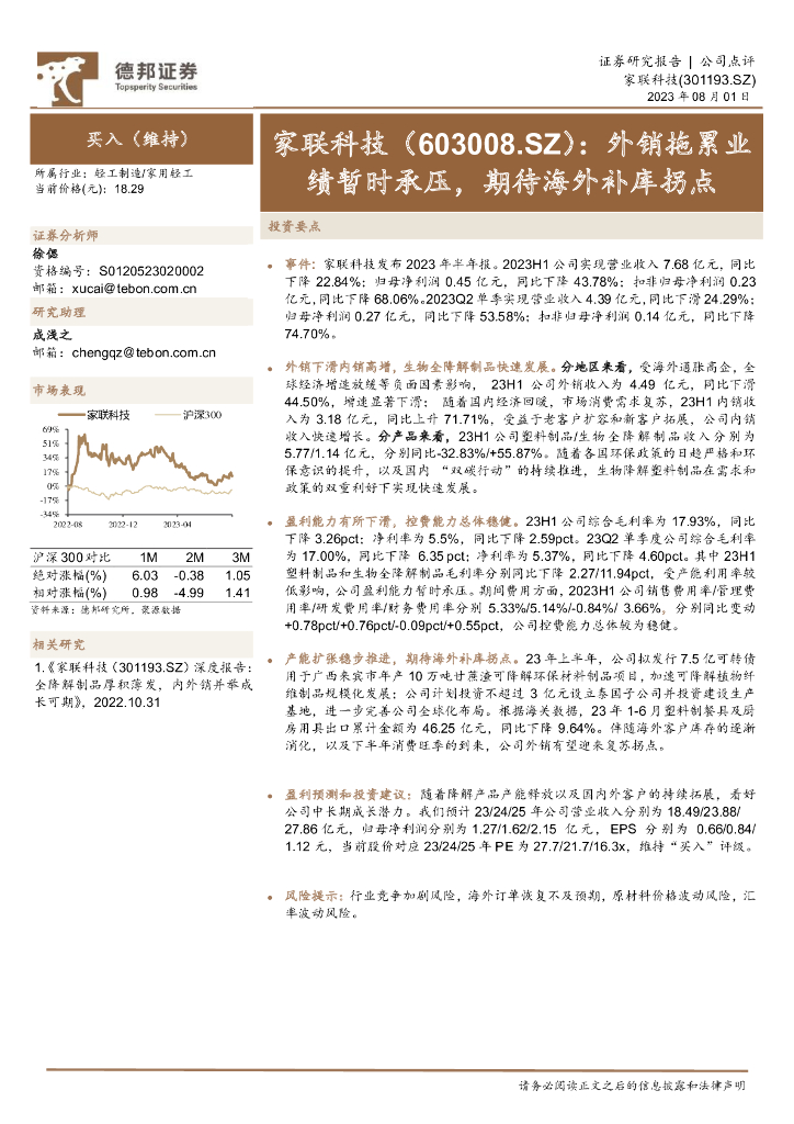 德邦证券:家联科技(301193)-外销拖累业绩暂时承压,期待海外补库拐点.pdf