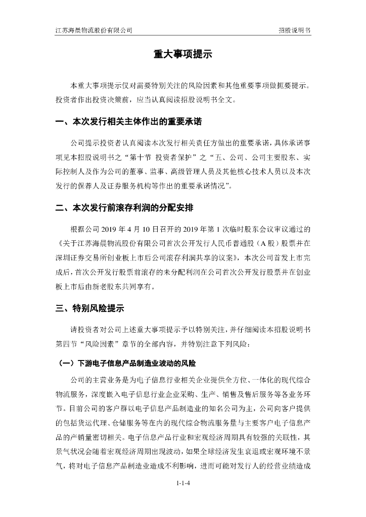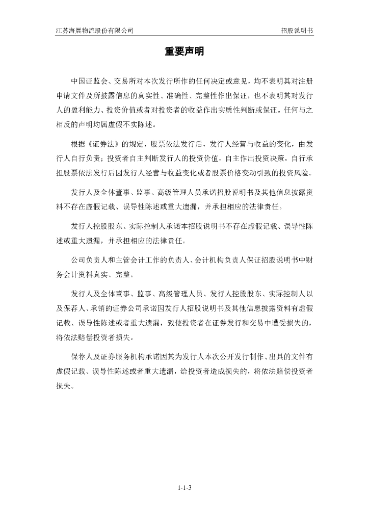江苏海晨物流股份有限公司深交所创业板IPO上市招股说明书.pdf