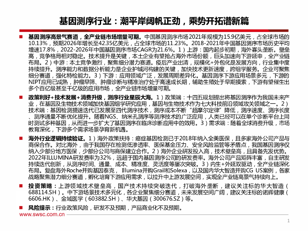 西南证券:基因测序行业:潮平岸阔帆正劲,乘势开拓谱新篇.pdf