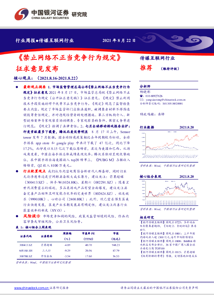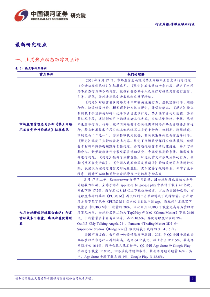 中国银河:传媒互联网行业周报:《禁止网络不正当竞争行为规定》征求意见发布.pdf
