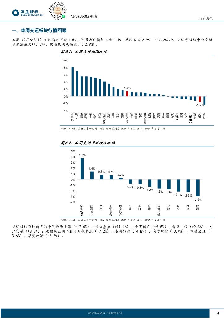 国金证券:交通运输仓储行业周报:中通快递纳入港股通,BDI周环比增长18%.pdf
