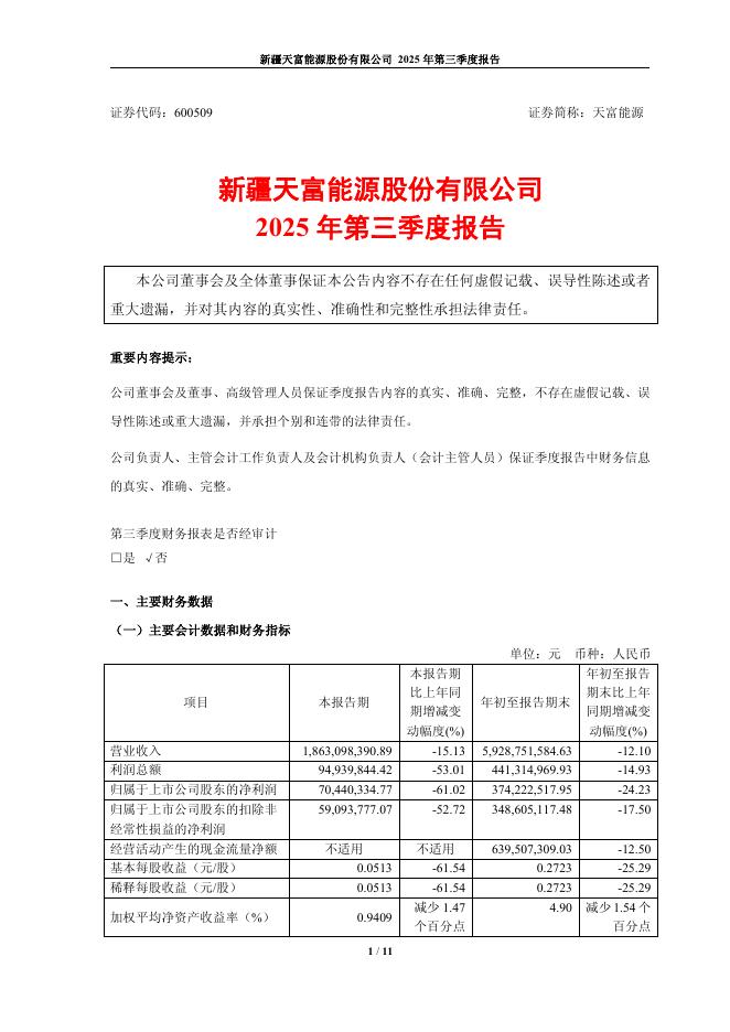 600509-天富能源:新疆天富能源股份有限公司2025年第三季度报告.pdf