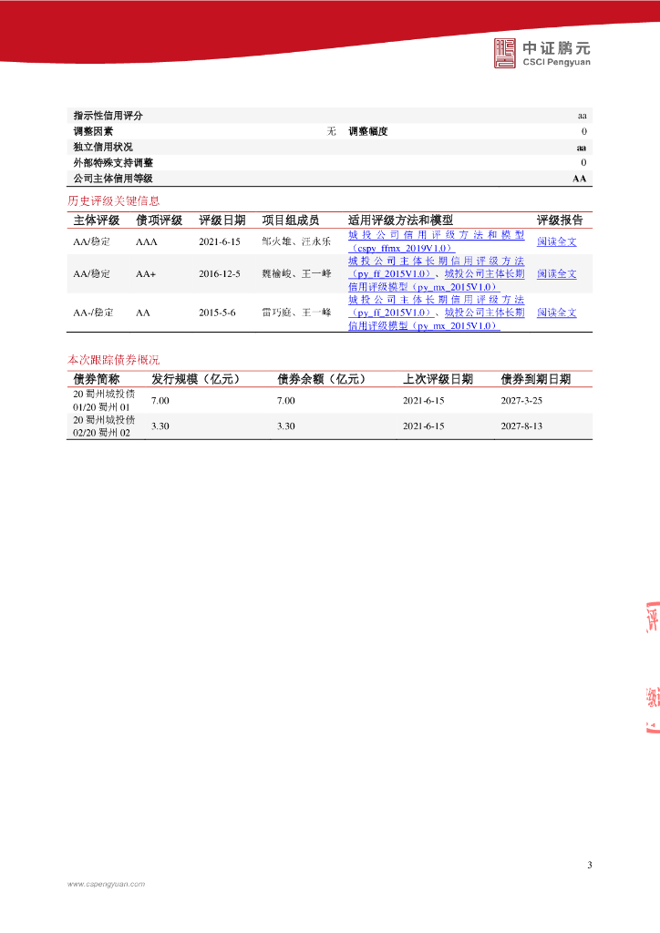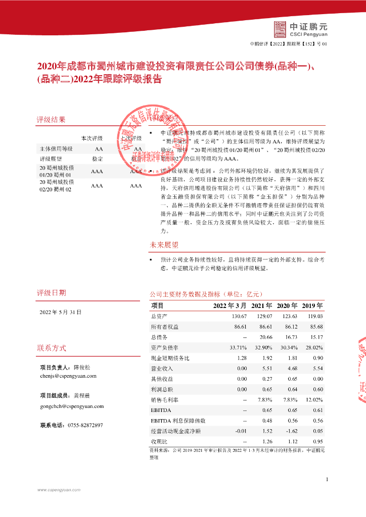 鹏元:2020年成都市蜀州城市建设投资有限责任公司公司债券(品种一)、(品种二)2022年跟踪评级报告.pdf