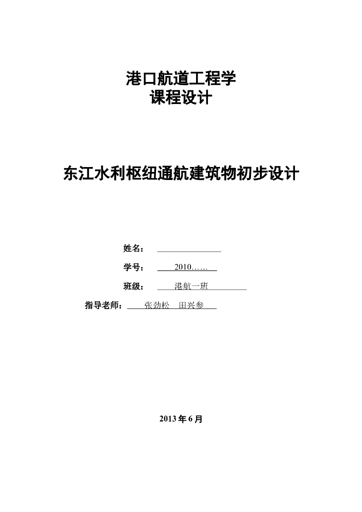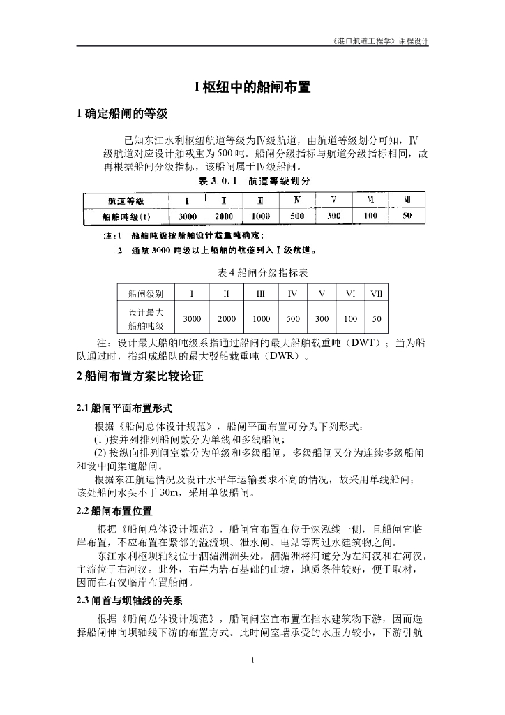 港口航道工程水利枢纽通航建筑物初步设计.doc
