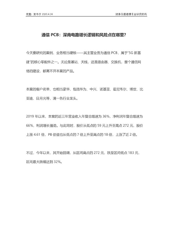 并购优塾:通信PCB—深南电路增长逻辑和风险点在哪里?.pdf