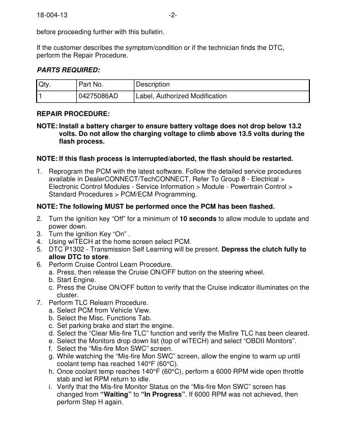 克莱斯勒 达特 2013 PF 发动机稳定性问题.pdf