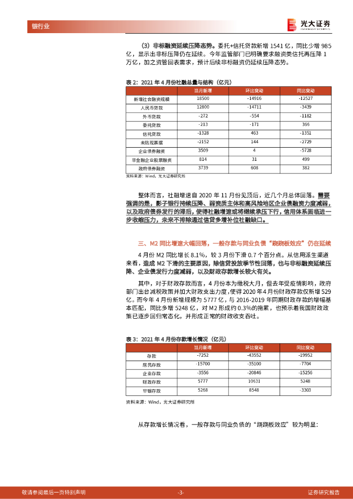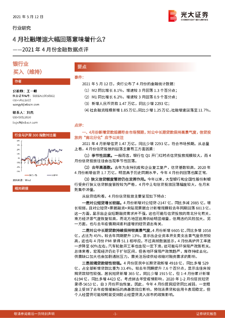 光大证券:银行2021年4月份金融数据点评:4月社融增速大幅回落意味着什么?.pdf